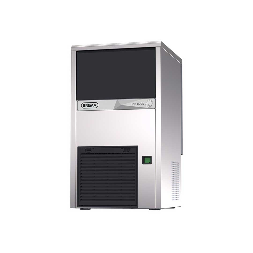 Production: kg. 28 kg/day Storage cap: kg. 9 Air condensing system Voltage: 220-240/ 50hz/ 1 phase/ kw 0.37 Made in AISI 304 18/10 stainless steel Weight (net/gross) 32 kg Dim: 390 x 460 x h.690 mm