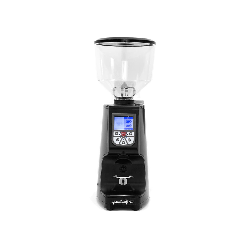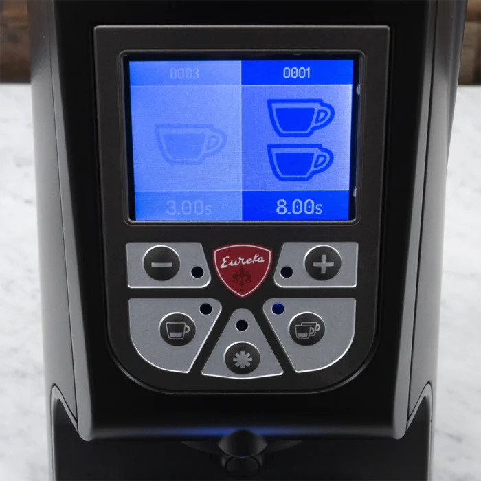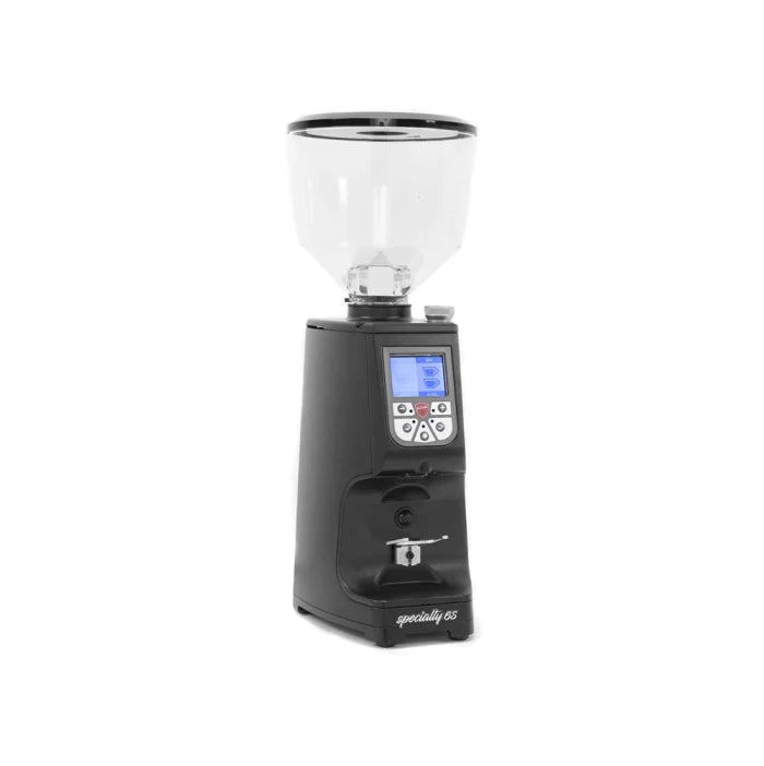 Brand: Eureka 1920 Product Id: atom 65 black BURRS Type: Flat Diameter: 65 mm Material: Hardened steel DISPENSING SYSTEM Display: Yes (colored) Dose counter: Yes Spotlight on filter holder: Yes ENGINE Traction: Direct Rpm: 1310 Power: 510 watts Feeding: Single-Phase VARIOUS Available versions: Electronic Stepless micrometric adjustment: Yes Bean hopper capacity: 1,2 kg Productivity (g/s): 2,7 – 3,7 DIMENSIONS H: 540 mm X W: 205 mm X D: 227 mm Weight: 9.5 kg